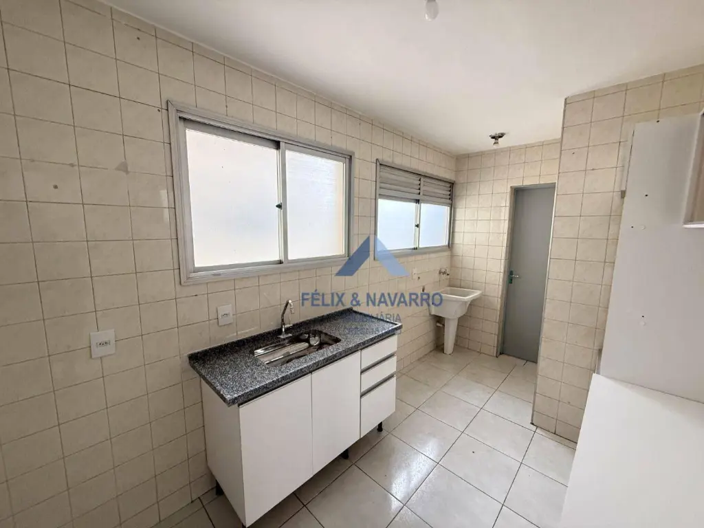 São 52 m², sendo 02 dormitórios, sala 2 ambientes, sacada, cozinha (com armários), lavanderia, 2 banheiros (social e serviço) e 1 vaga de garagem livre.