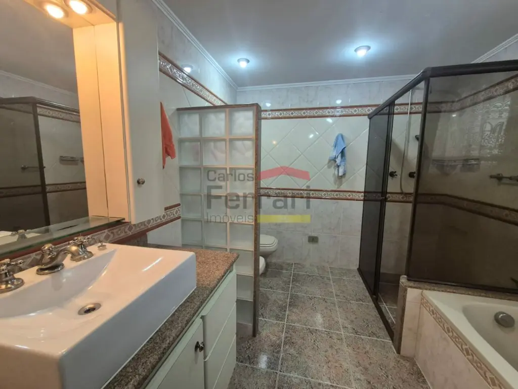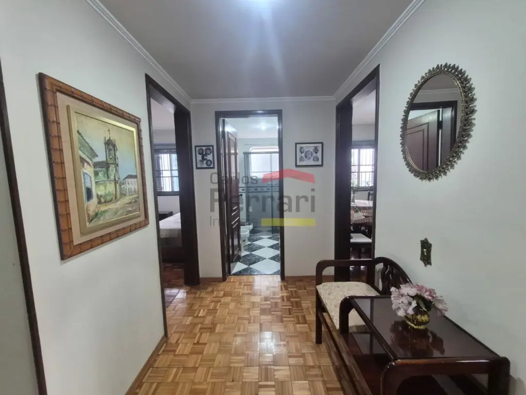 O imóvel possui 4 quartos (1 suíte com closet), 4 banheiros (sendo 1 lavabo), Hall social, salas e ampla cozinha. Todos os ambientes são muito espaçosos e possuem armários. São 2 vagas da garagem fixas, com espaço para 3 carros. Apartamento de frente para a rua com aquecimento elétrico tipo Boiler.