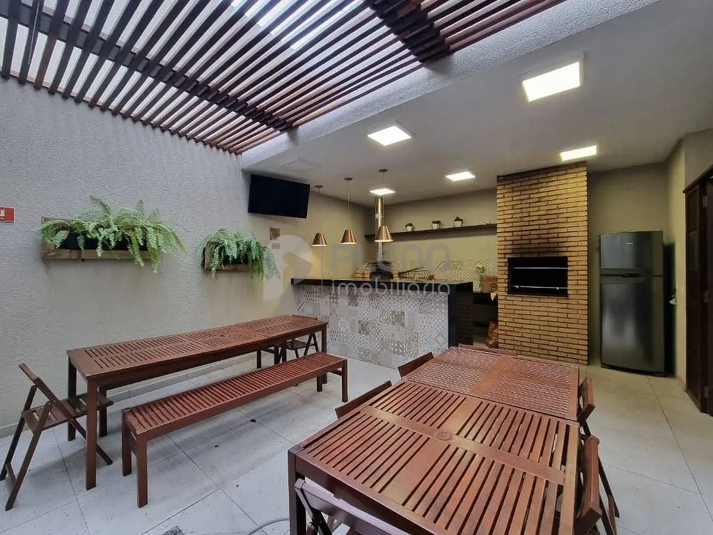 Condomínio conta com piscina adulto e infantil, vestiário, churrasqueira com forno de pizza, amplo salão de festas, academia, salão de jogos, playground, brinquedoteca, bicicletário, pet place, portaria 24 horas e serviço de zeladoria.