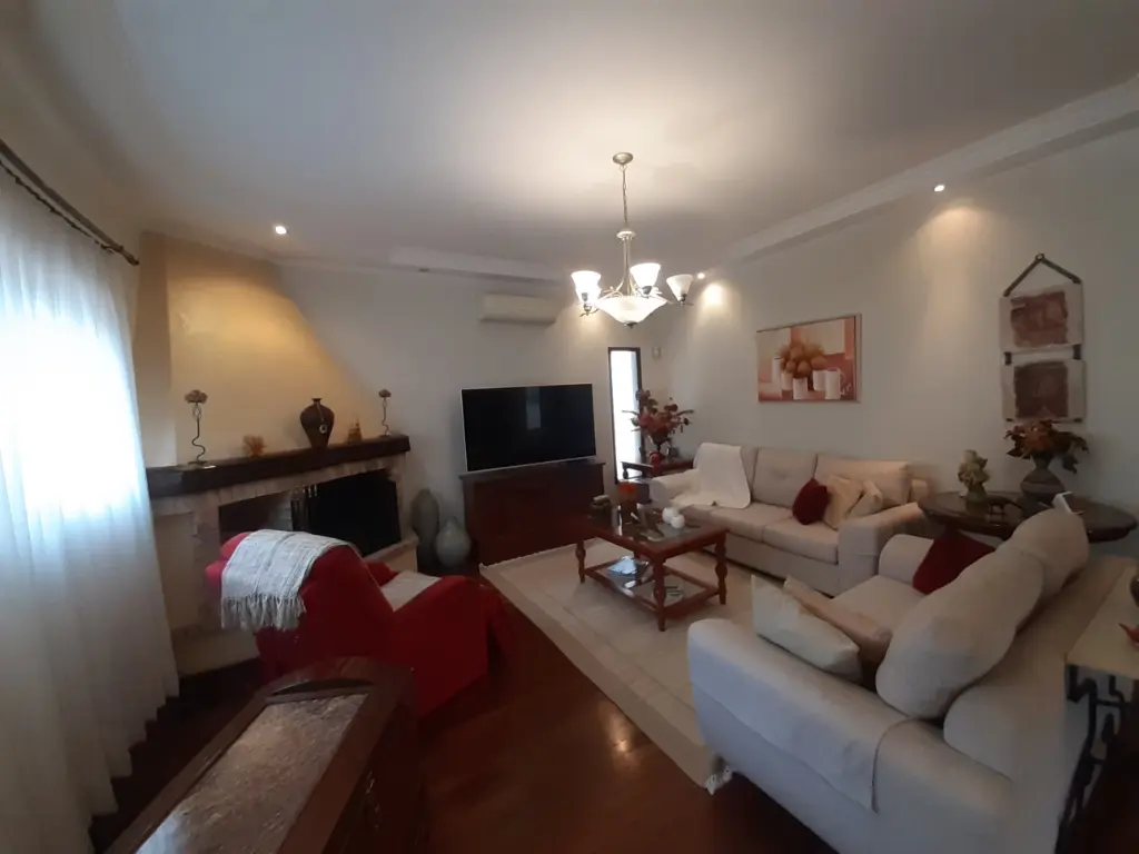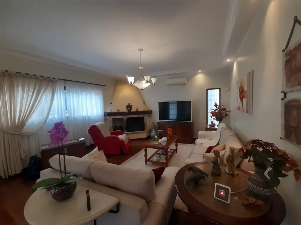 Sala de TV com ar-condicionado e lareira
