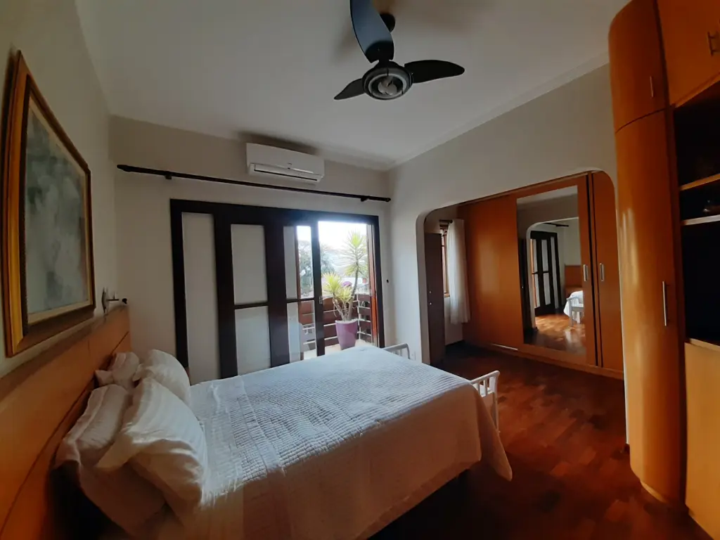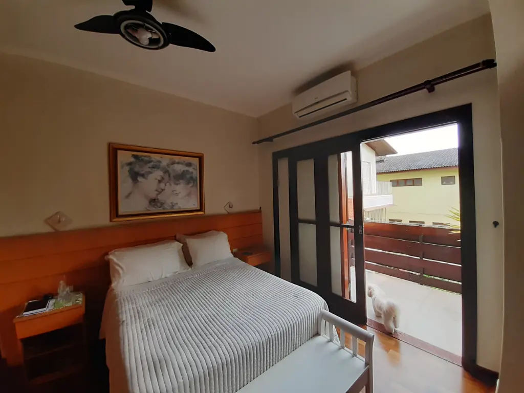 Suíte master com ar-condicionado e varanda privativa