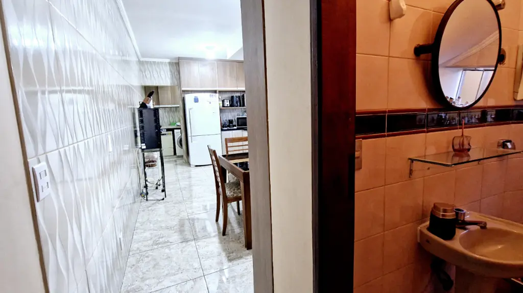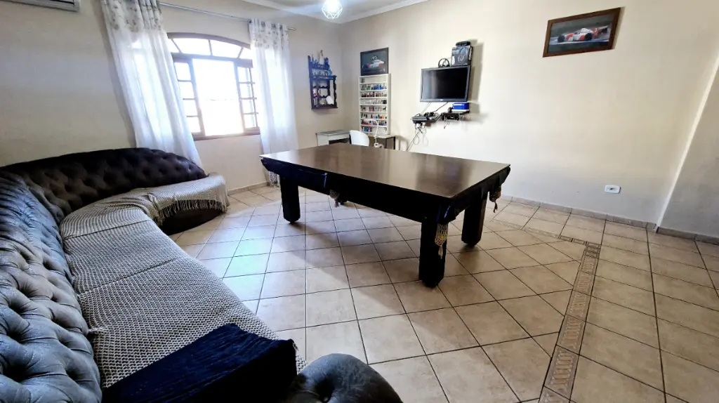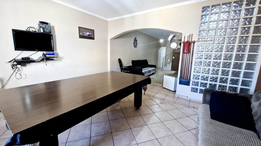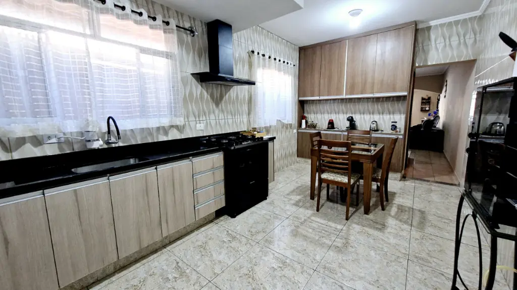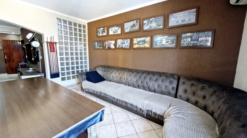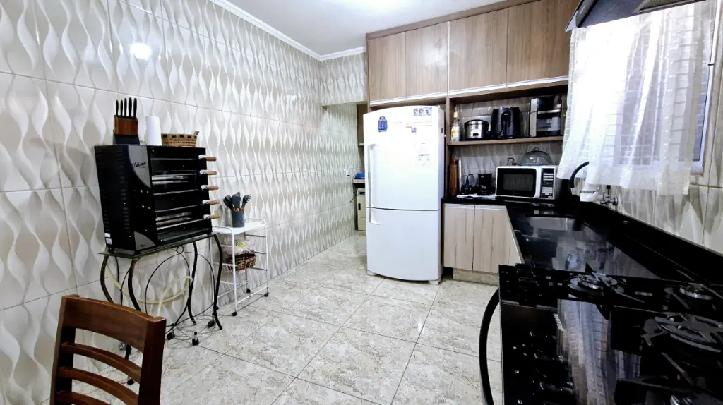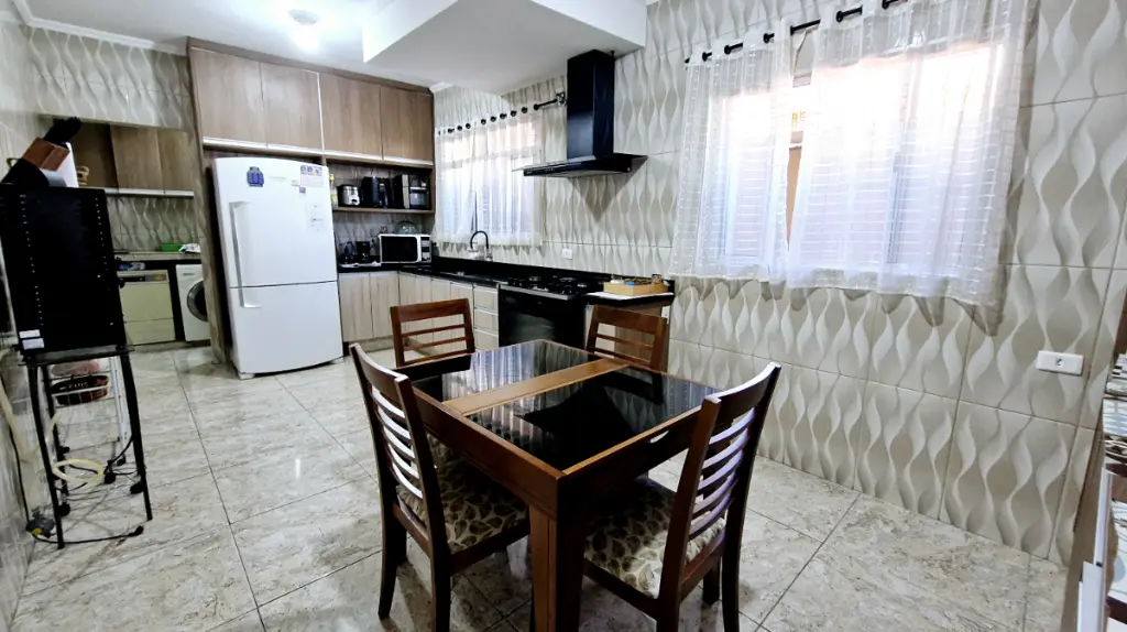 A cozinha é integrada à copa, criando um ambiente harmonioso para suas refeições. O imóvel ainda oferece um espaço gourmet com churrasqueira e forno, perfeito para momentos de lazer. A sala de estar é iluminada, arejada e ampla, ideal para relaxar.