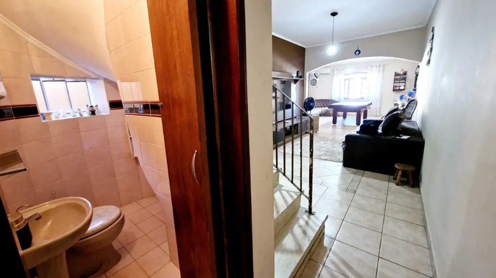 A casa conta com 3 quartos, sendo 1 suíte, ideal para acomodar a sua família com conforto. Possui 2 banheiros e um lavabo, além de 2 vagas de garagem. O espaço é valorizado por um design moderno, com piso de porcelanato que confere elegância e praticidade.