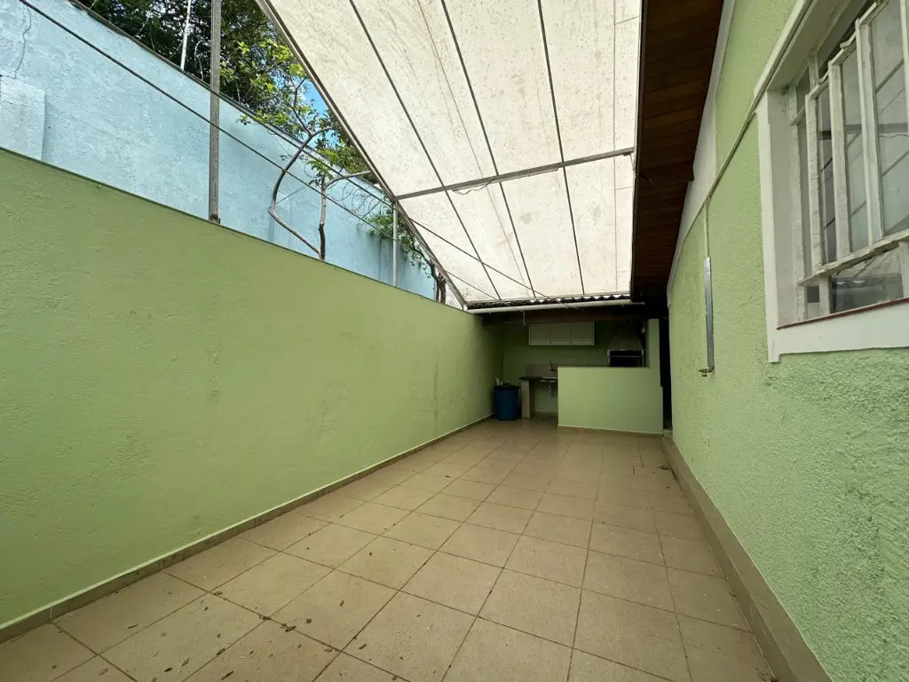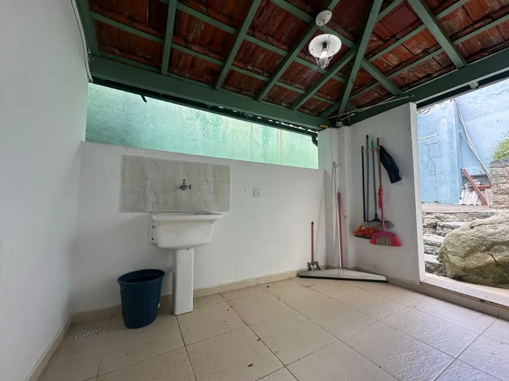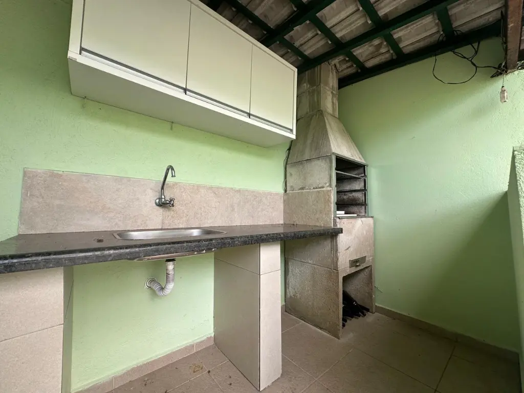 ?Quintal espaçoso nos fundos com churrasqueira e horta.