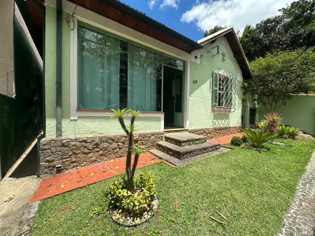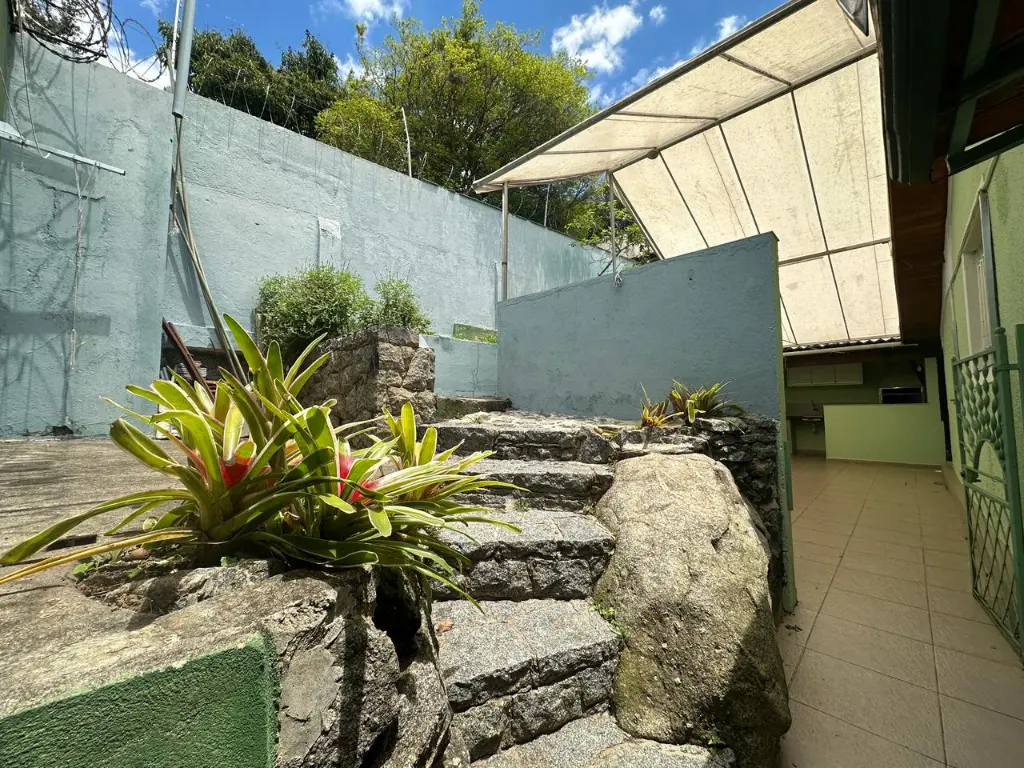 Quintal com jardim na frente;