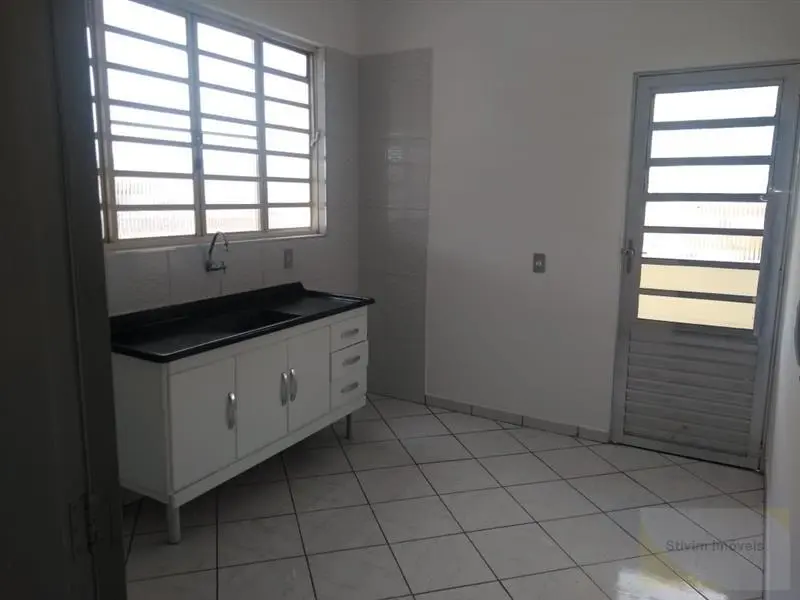 Quarto, cozinha e banheiro.