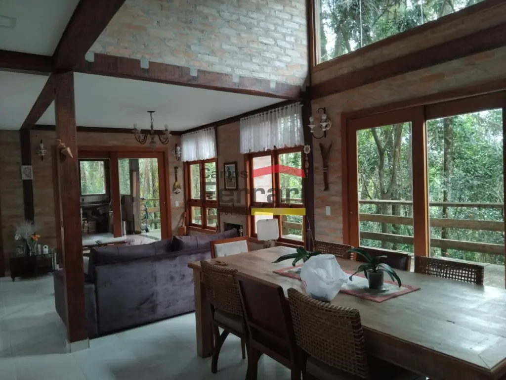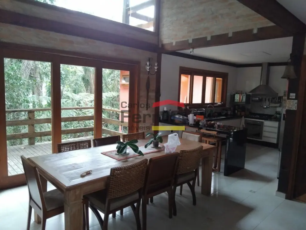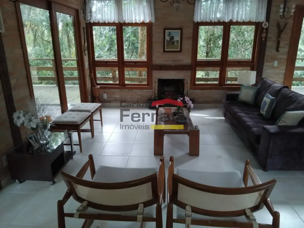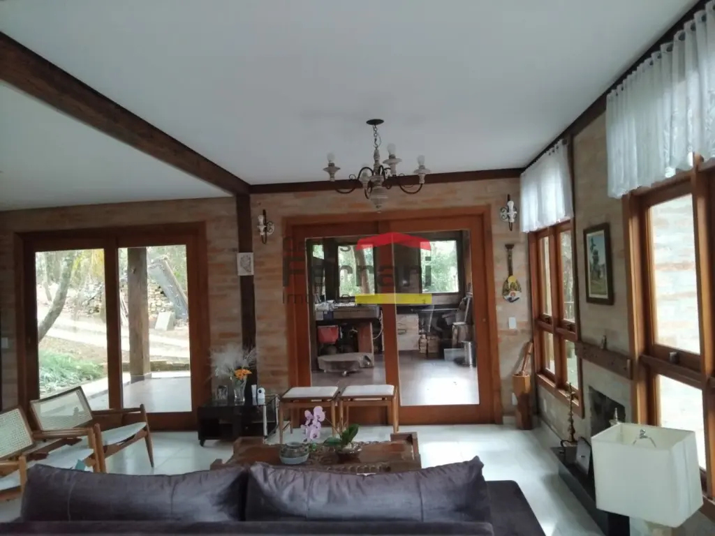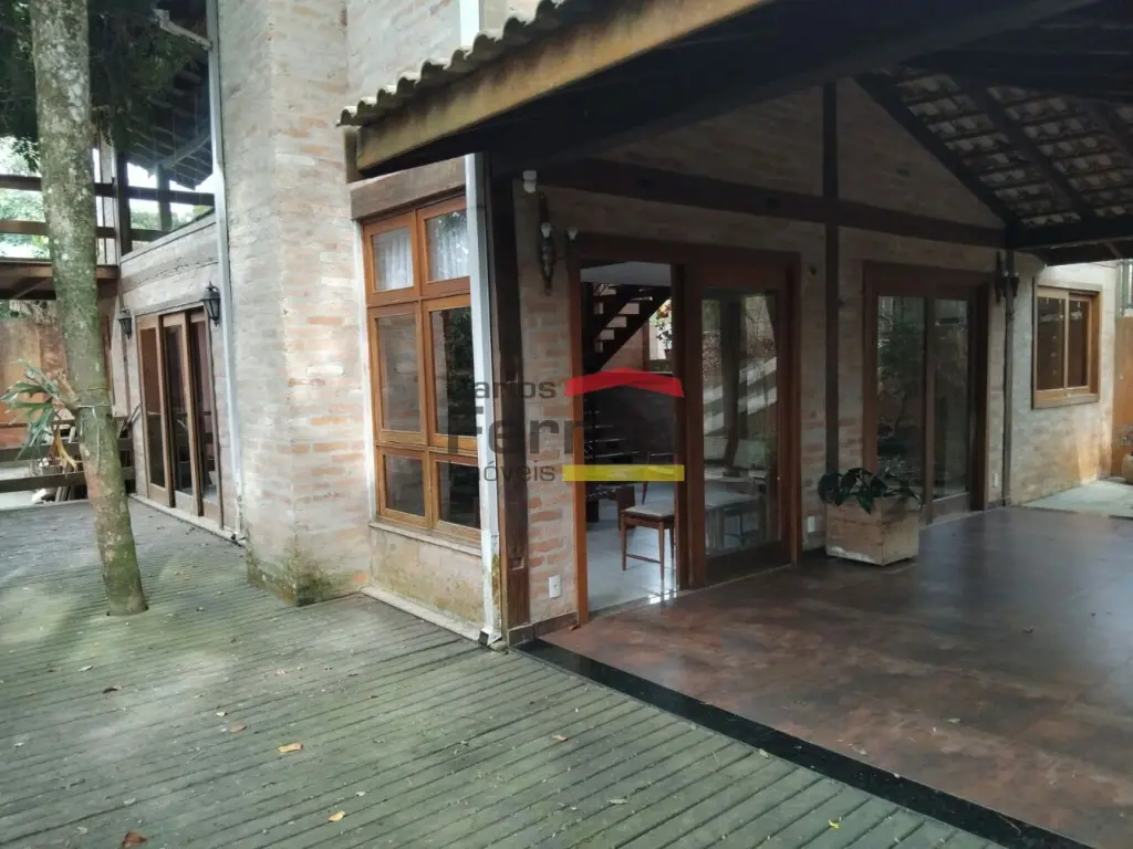 Condomínnio Sausalito - Sobrado avarandado, são 3 suítes, sendo uma das suítes com banheira, e outra suíte uma fora da casa, 3 salas amplas, em piso frio, lustres, com ótima iluminação, e com lareira, estilo rústico, cozinha integrada com a sala, lavanderia coberta, lavabo, despensa. 4 vagas de garagem.