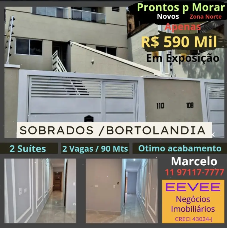 Lindo Sobrado Novo com 2 Dormitórios, 2 suítes, 2 vagas, ótimo acabamento, rua tranquila na Bortolândia ! Visite! em exposição!