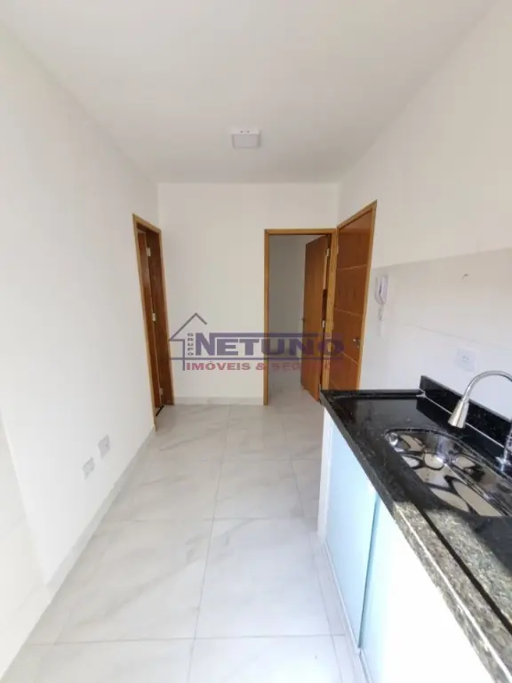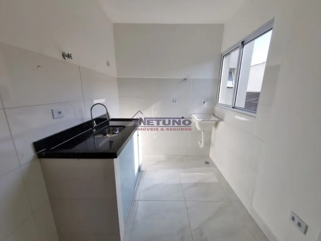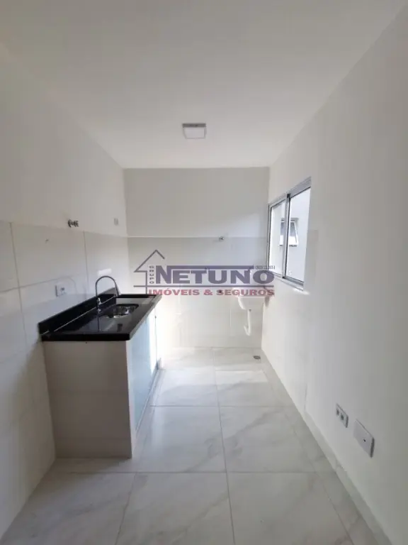 Apartamento novo com 1 quarto, cozinha, banheiro e área de serviço.