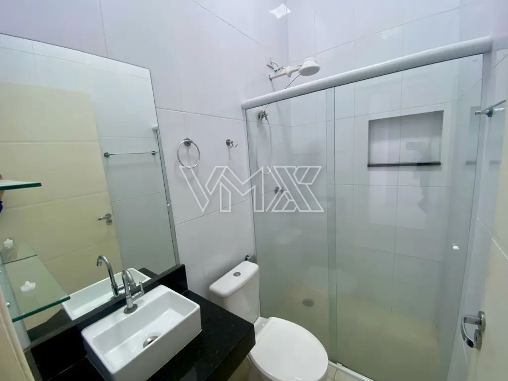 Banheiro com box de vidro e acabamento de alto padrão