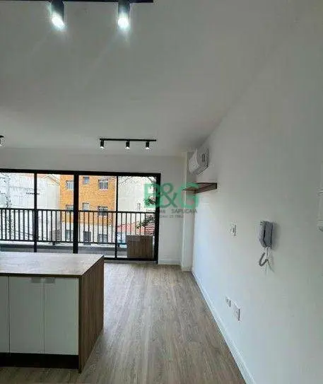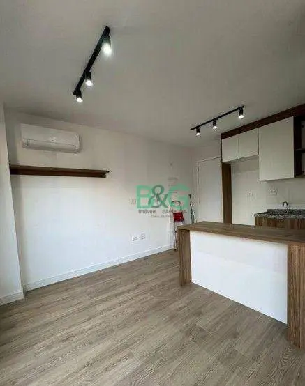 Imóvel com pintura nova, piso laminado, armário embutido, cozinha completa com armários e cooktop, banheiro com box e ar-condicionado já instalado.