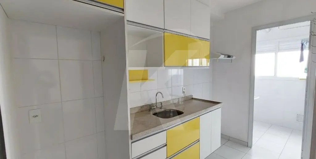Apartamento medindo 63 m² com 2 dormitórios, sendo 1 com suíte, sala, sacada envidraçada e gourmet, cozinha com armários, banheiro, área de serviço e 1 vaga de garagem coberta, fixa e livre.