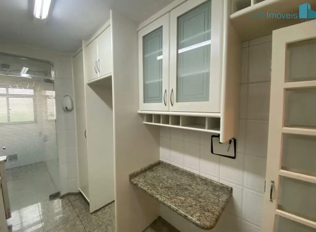Cozinha com armários e área de serviço integrada