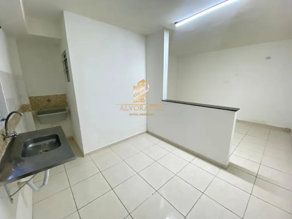 Amplo apartamento em condomínio possuindo 1 dormitório, cozinha, banheiro e área de serviço, (sem vaga de garagem).