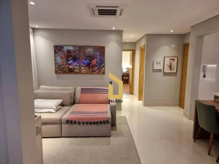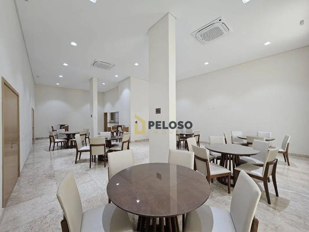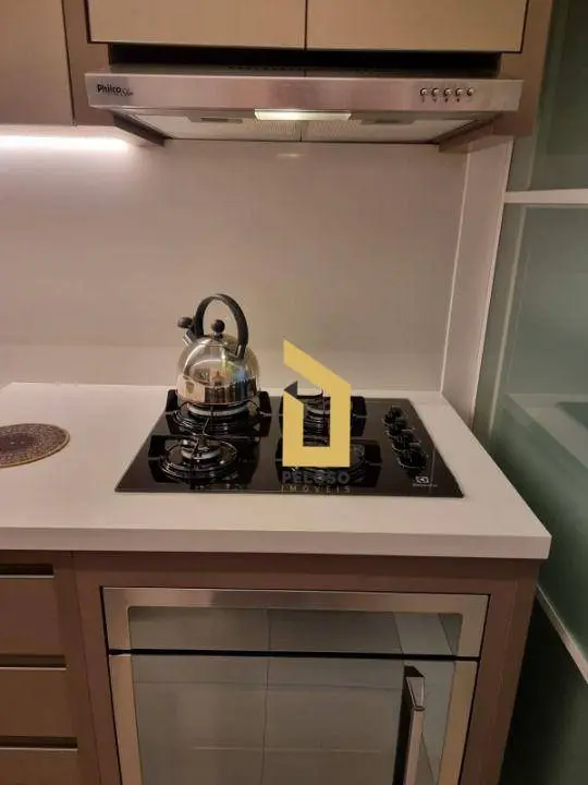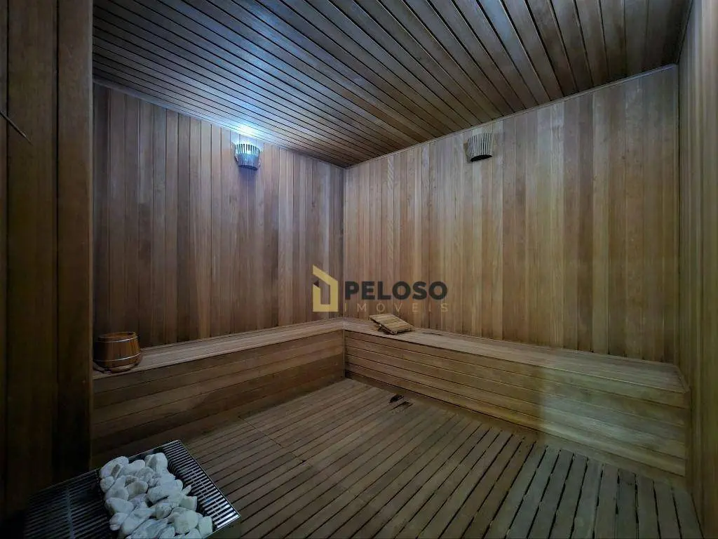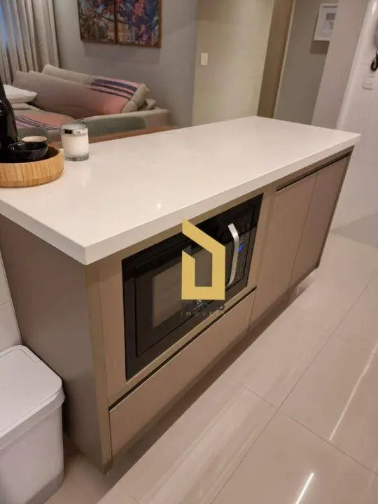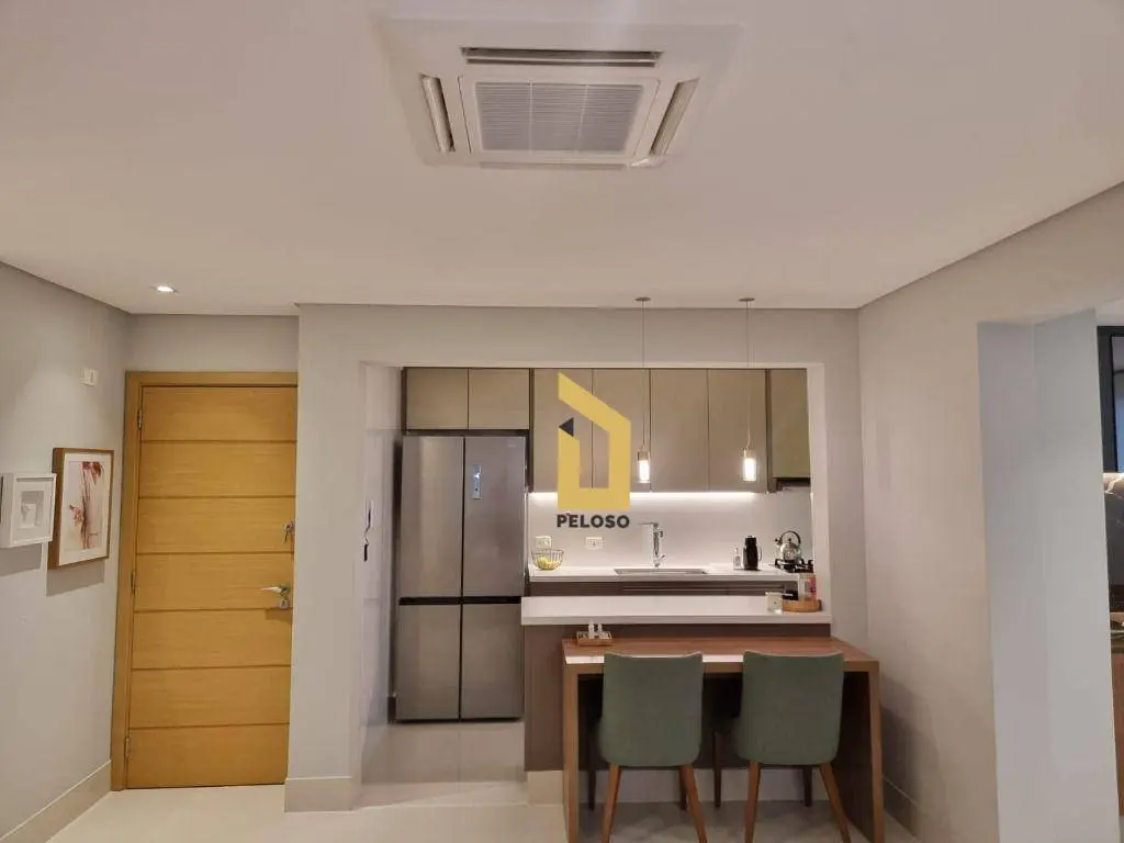 2 dormitórios sendo 1 suíte com ar-condicionado, armários sob medida e banheiro, sala de estar com lareira ecológica, sala de jantar com adega climatizada, banheiro social com armários e box de vidro, cozinha moderna com armários planejados e área de serviço.