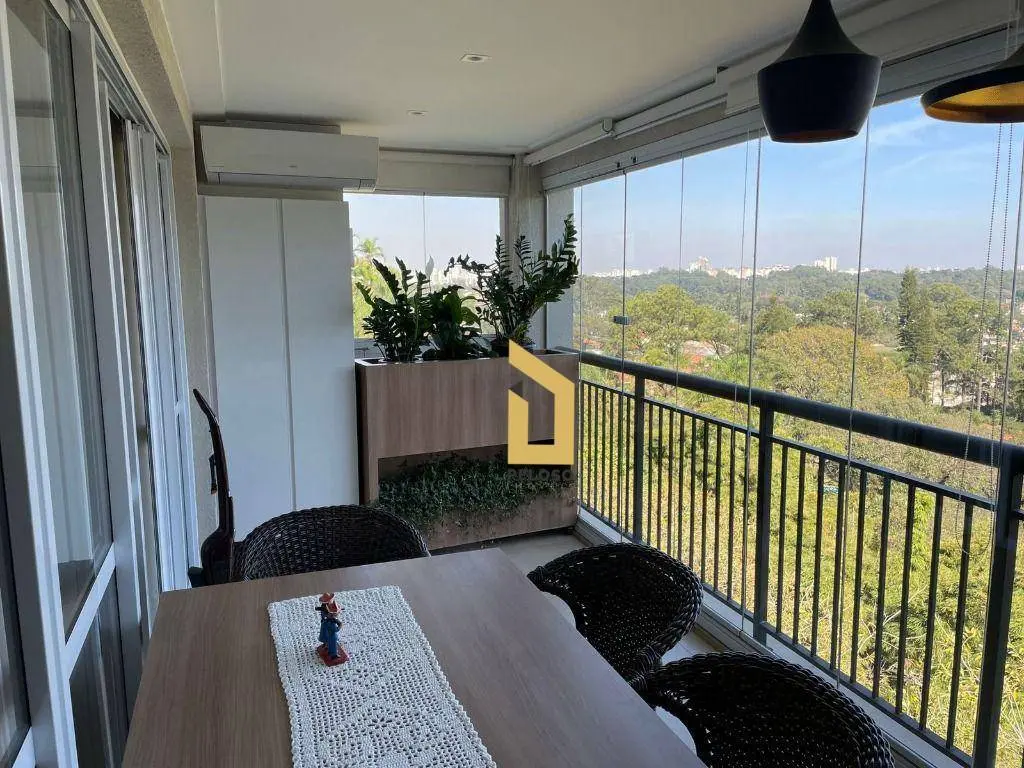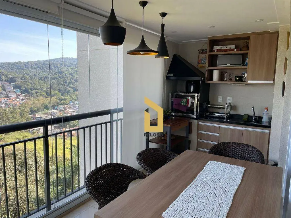 Destaque para a varanda gourmet com fechamento em vidro.
