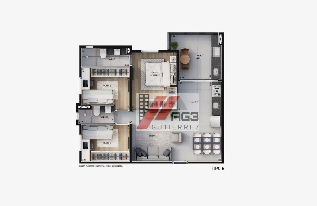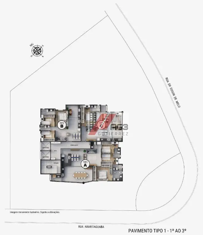 Além desse modelo de unidade, o empreendimento também conta com plantas de 68m² com a disposição de 3 dormitórios, uma suíte e duas vagas e plantas 111m² com 3 suítes, lavabo e 2 vagas de garagem.