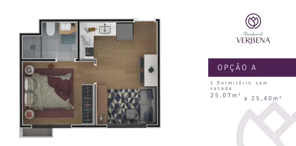 Apartamentos: 1 ou 2 dormitórios, com ou sem varanda.