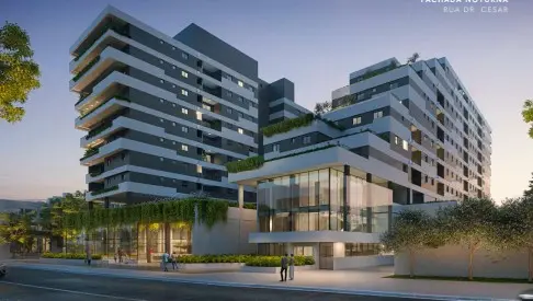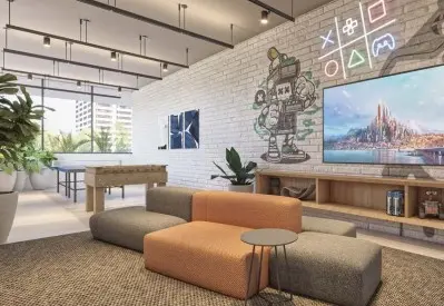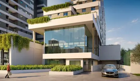 Condominio com 2 torres residenciais, mall com lojas no térreo - co-working com salas de reuniões, 03 elevadores por torre, vaga de garagem livre, pet place, academia, ponto de abastecimento para carro elétrico - lobby com pé direito triplo,
