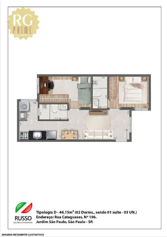 02 dormitórios sendo 01 suíte