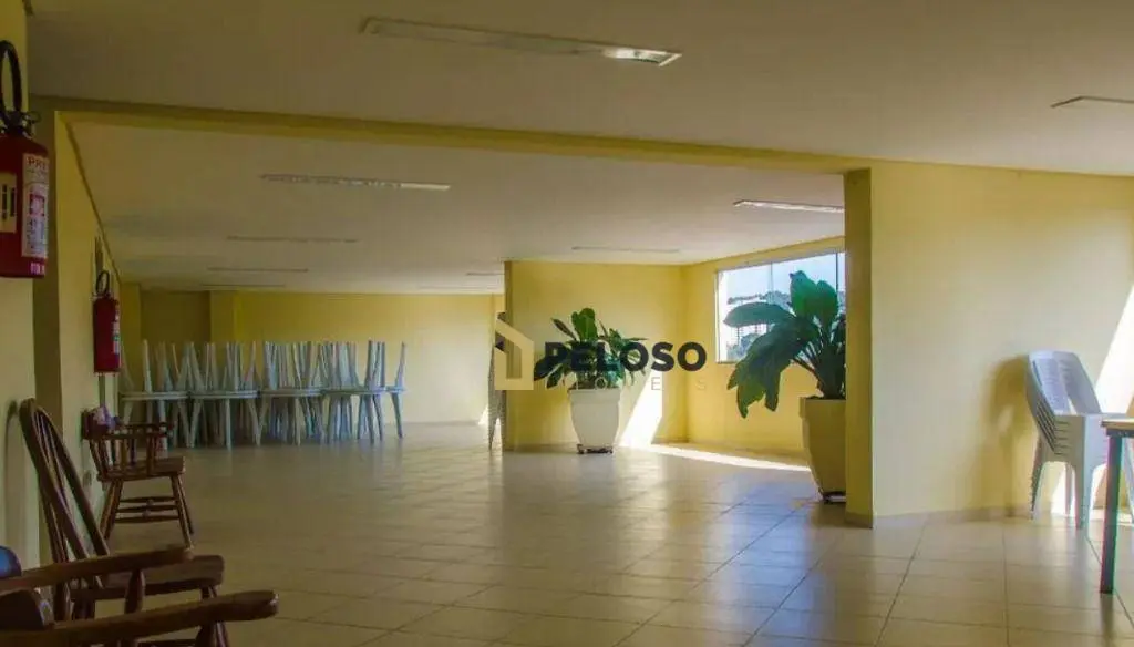 Condomínio com playground e salão de festas.
