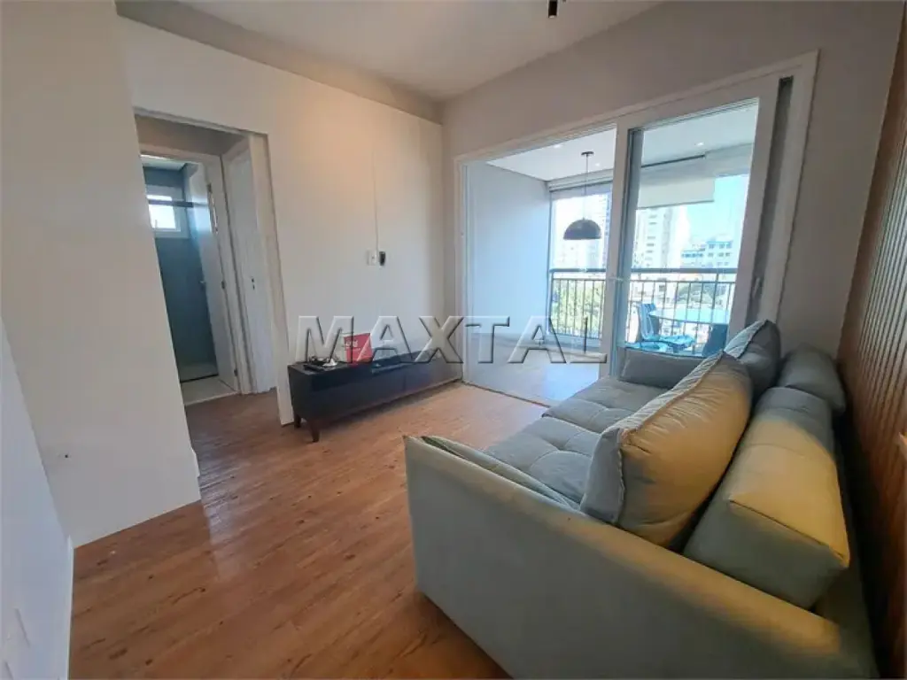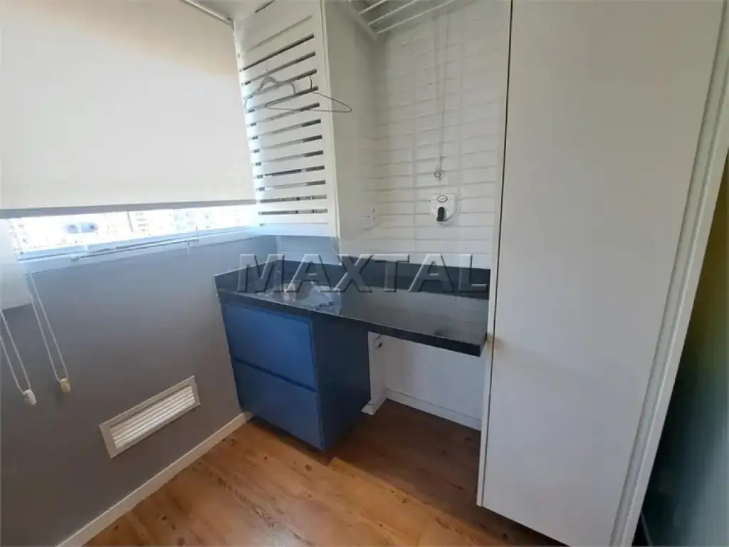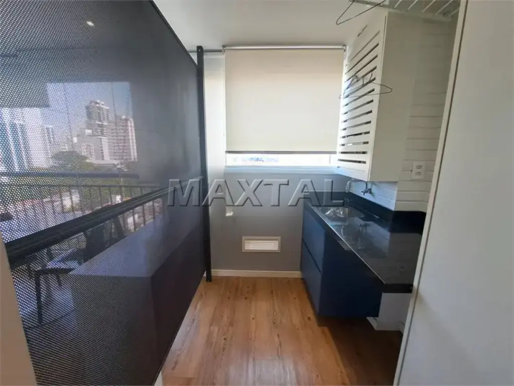 Moderno e bem planejado, este apartamento é perfeito para quem busca conforto, praticidade e excelente localização. Com 42 m² bem distribuídos, o imóvel conta com 1 dormitório com armários planejados e persiana elétrica, banheiro com ventilação natural, armário e box de vidro, cozinha e lavanderia com móveis planejados, sala com sofá e rack, além de uma charmosa varanda envidraçada com persianas, mesa e cadeira para home office.