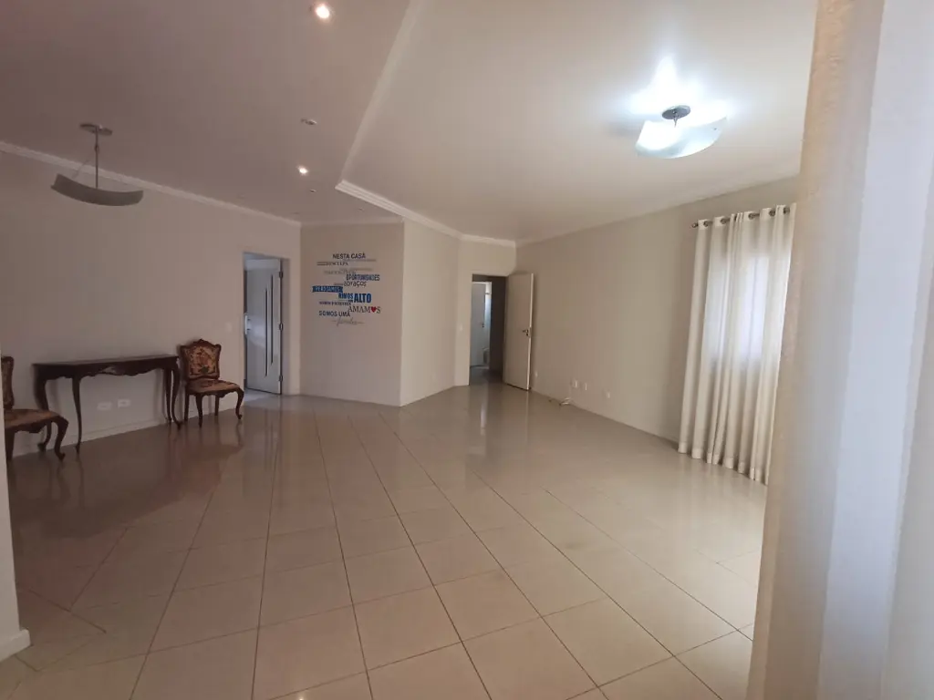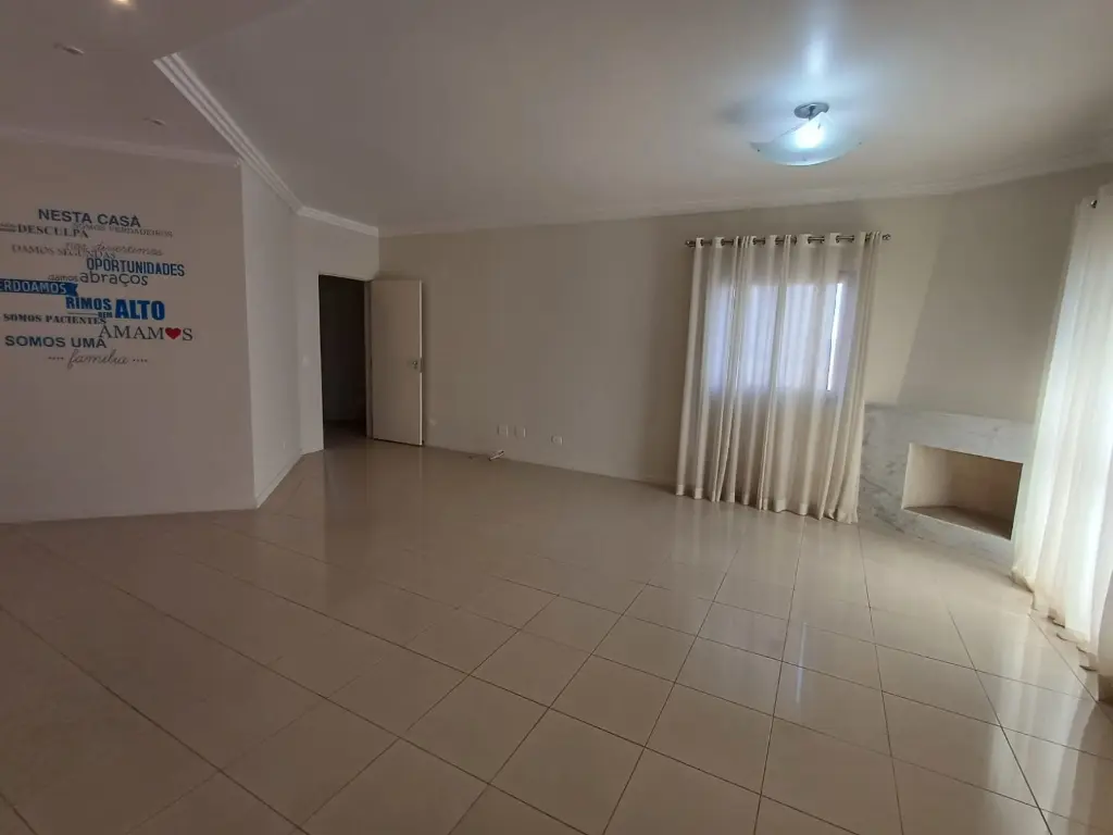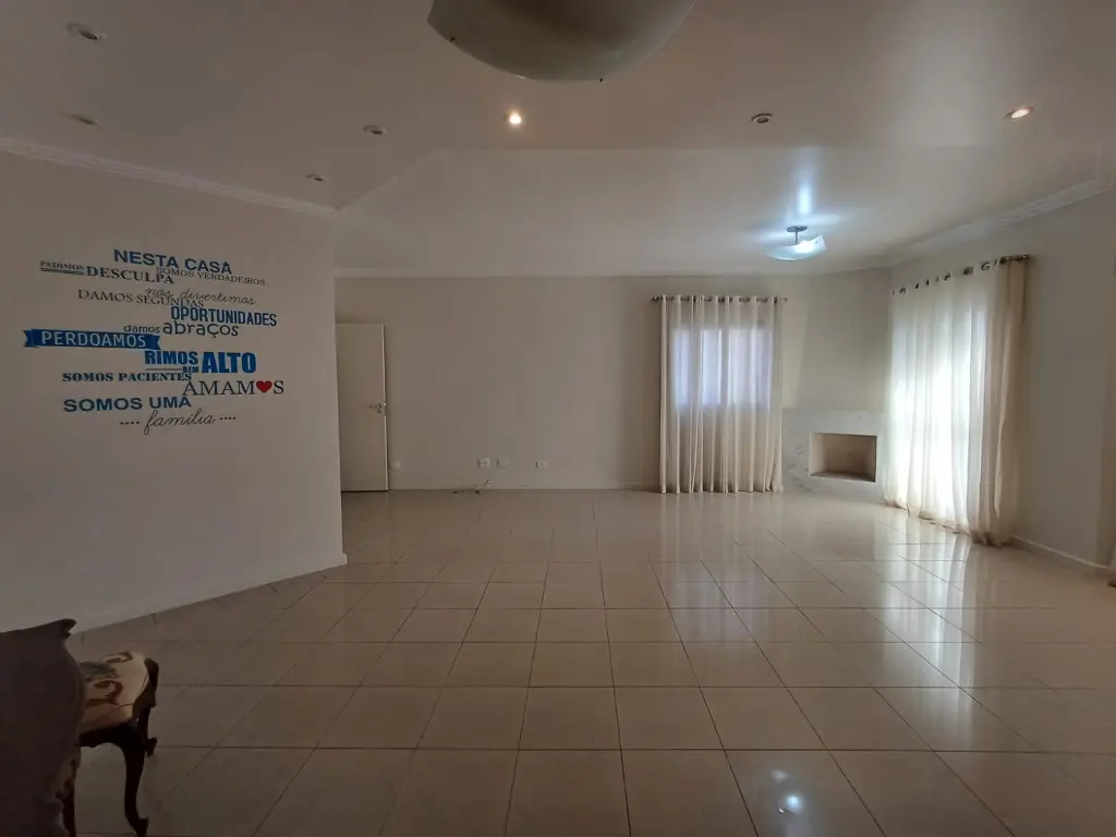 Sala ampla com 3 ambientes, lareira, teto rebaixado com sanca e ponto de luz
