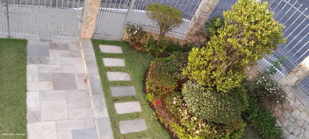 Jardim na frente da casa, trazendo charme, frescor e uma recepção acolhedora.