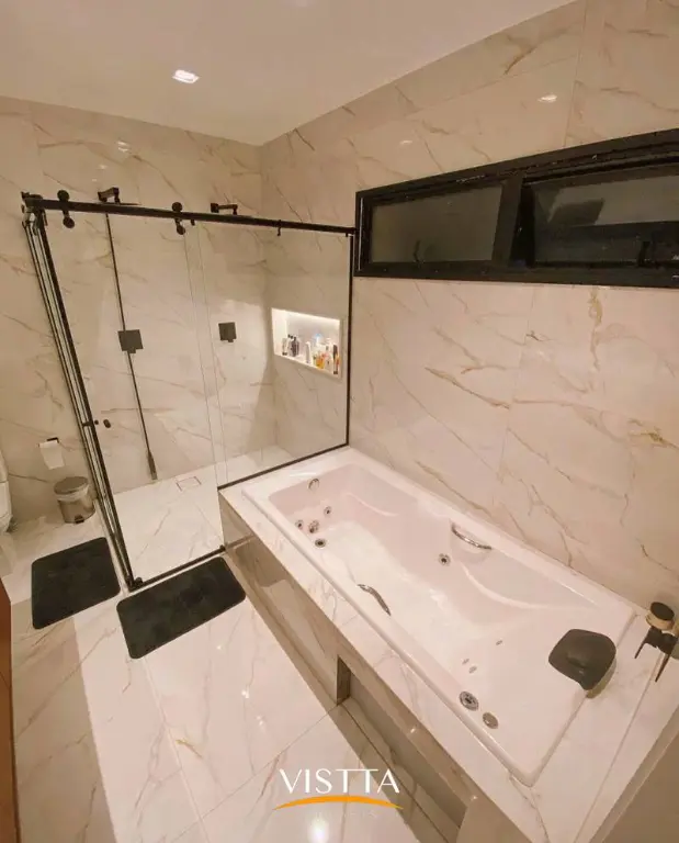 A casa também oferece cozinha moderna, lavanderia e suíte para hóspedes, além de automação e acabamentos impecáveis em todo o projeto.