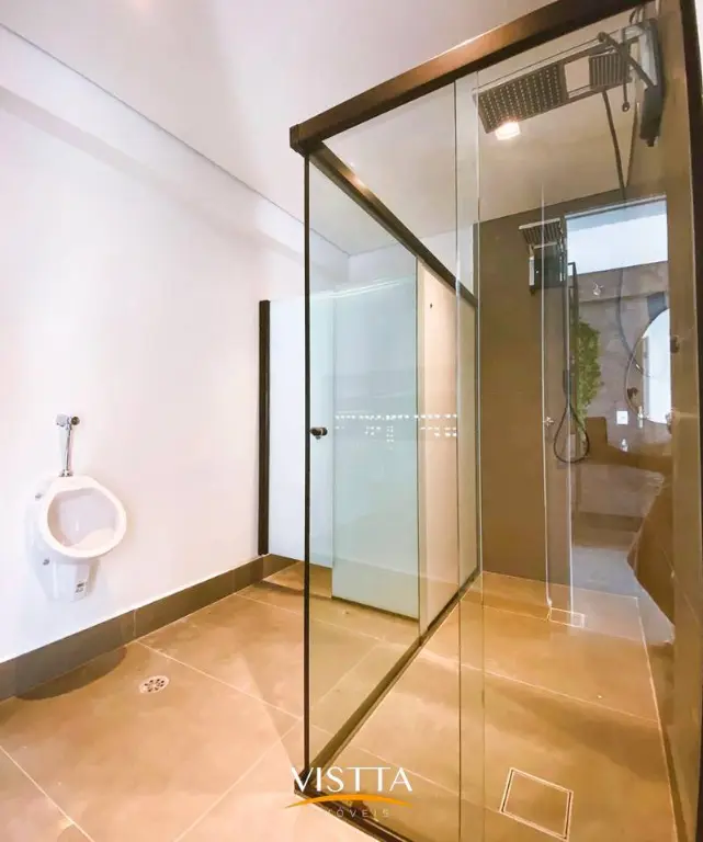 O living conta com 4 salas amplas, pé direito alto, ambientes climatizados e iluminação natural abundante através das grandes esquadrias envidraçadas. Um bar com móveis planejados complementa o espaço com charme e funcionalidade.