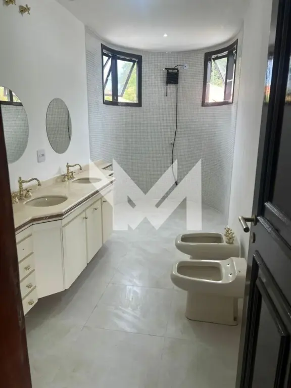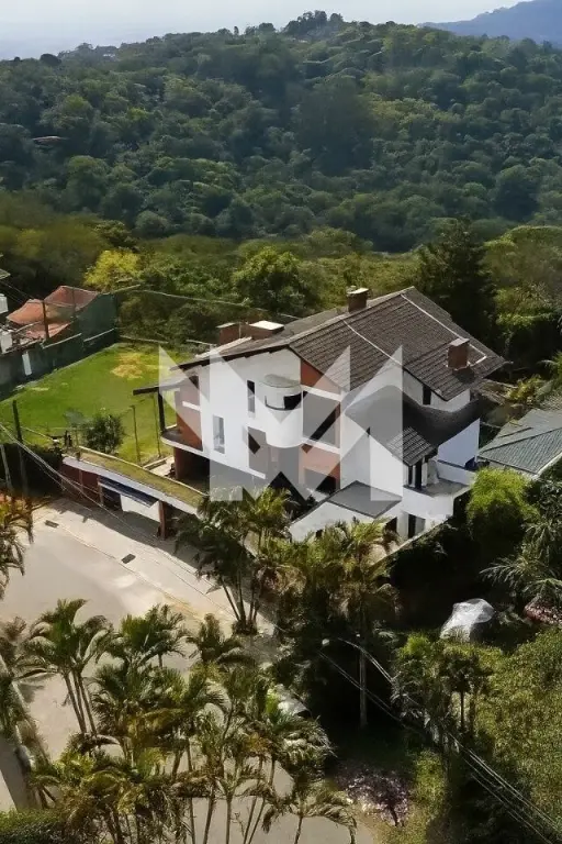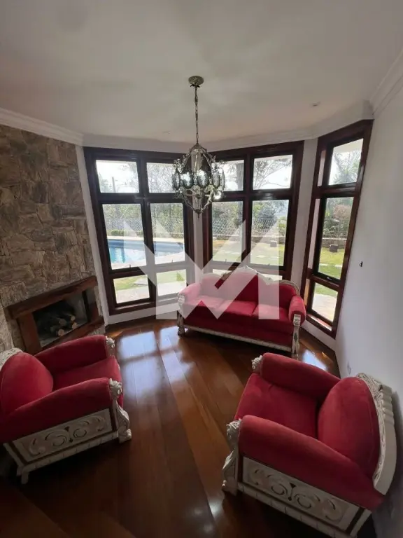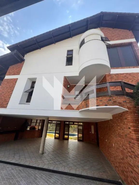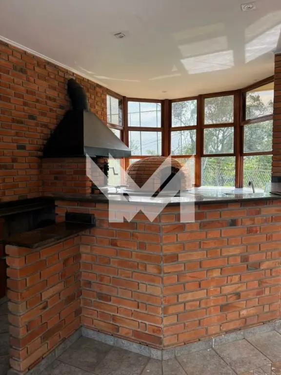 Sobrado com 4 quartos sendo 3 suítes, sala de estar, 2 salas com lareira, uma com vista para a mata e a outra com vista para piscina, 2 churrasqueiras e 1 forno de pizza, 3 banheiros, garagem 6 carros e anexo a casa 1 quarto privativo com cozinha e banheiro, com acesso interno e externo.