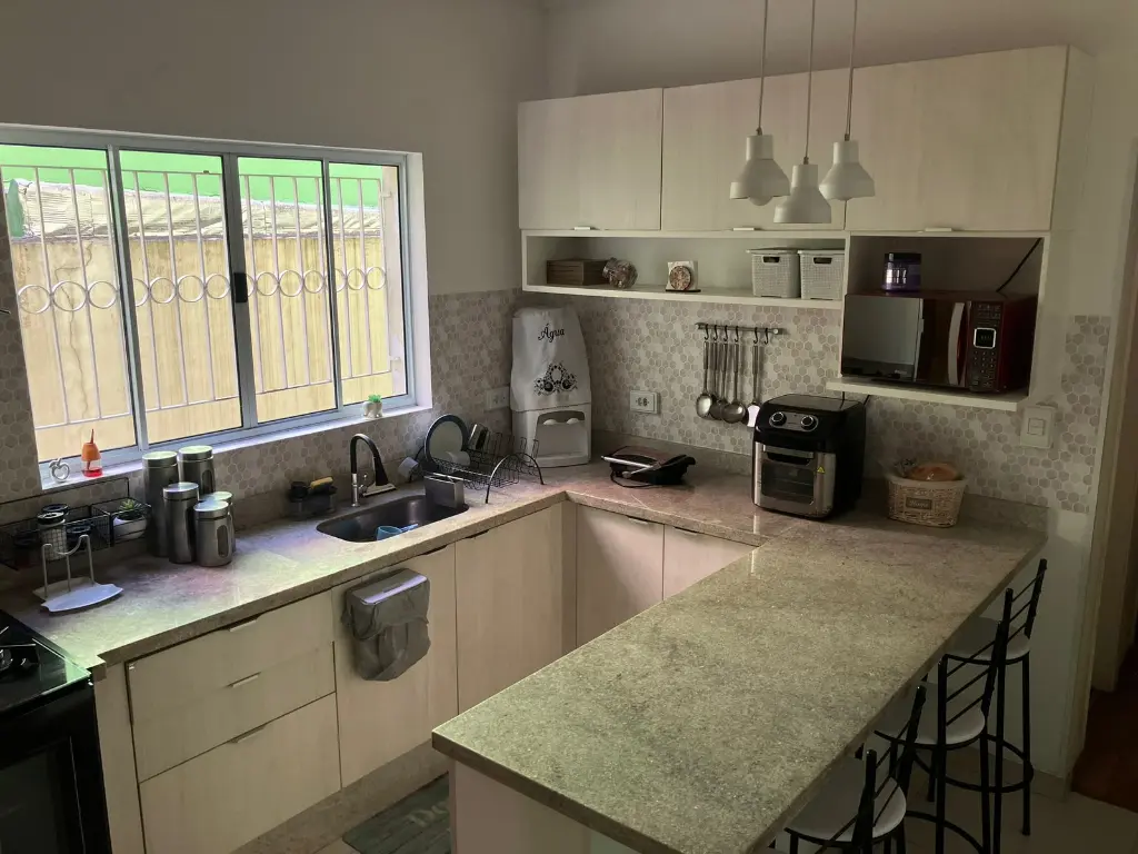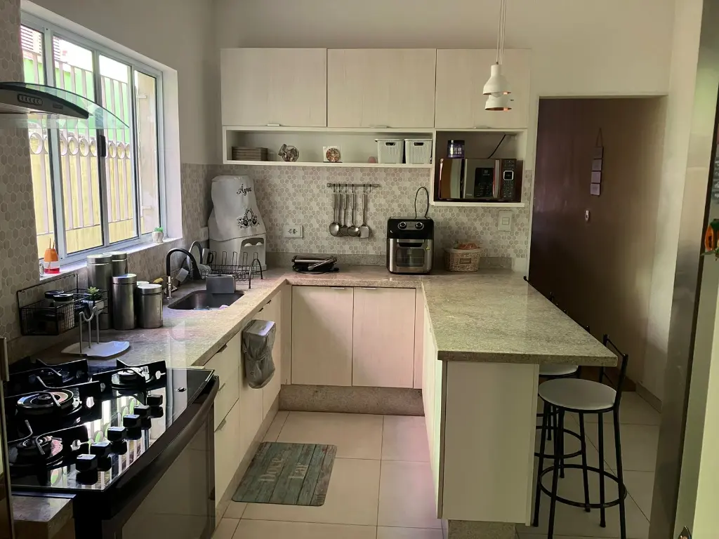 DESCRIÇÃO Imóvel completo com sala ampla, cozinha moderna, 4 dormitórios sendo 1 suíte e 3 banheiros. Quintal e área de churrasqueira. IPTU isento e Documentação ok.