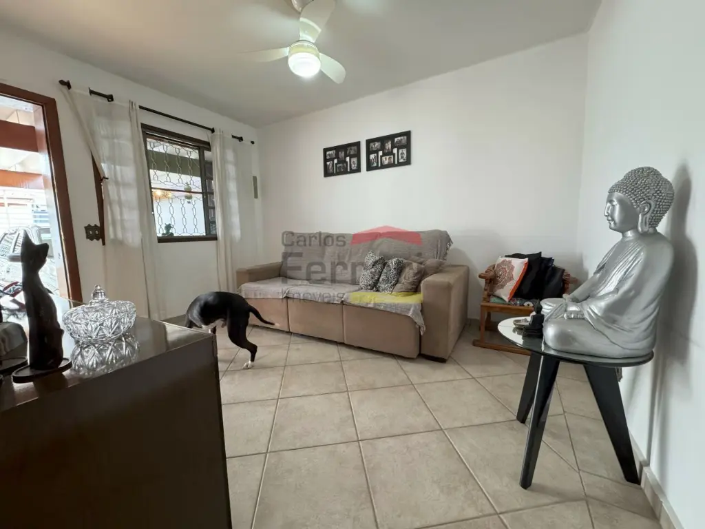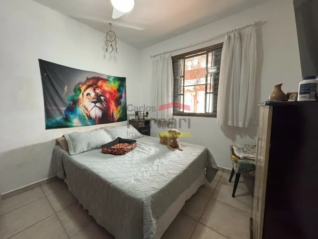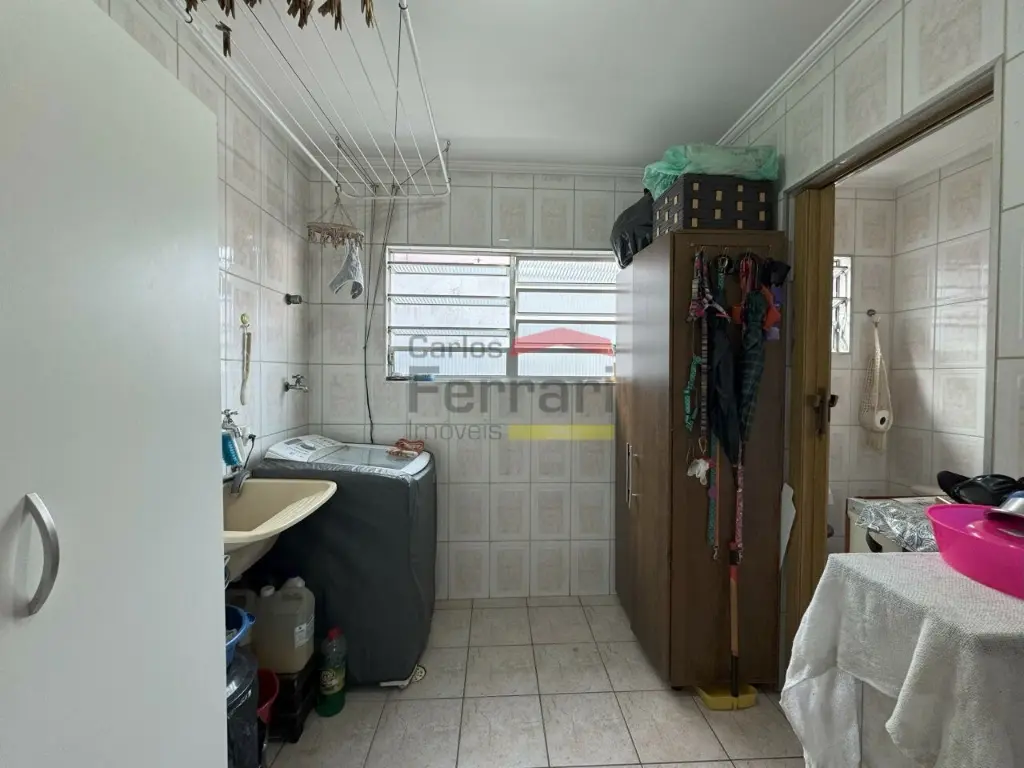 No pavimento térreo: sala de estar, copa e cozinha com armários embutidos, 2 dormitórios, 1 banheiro social, área de serviço e banheiro de serviço.