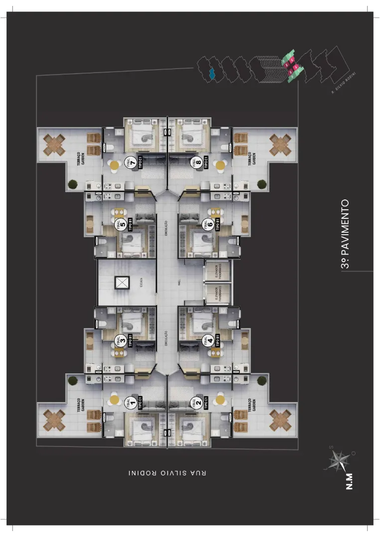 ⇒ Unidades por andar: 8,4 e 2